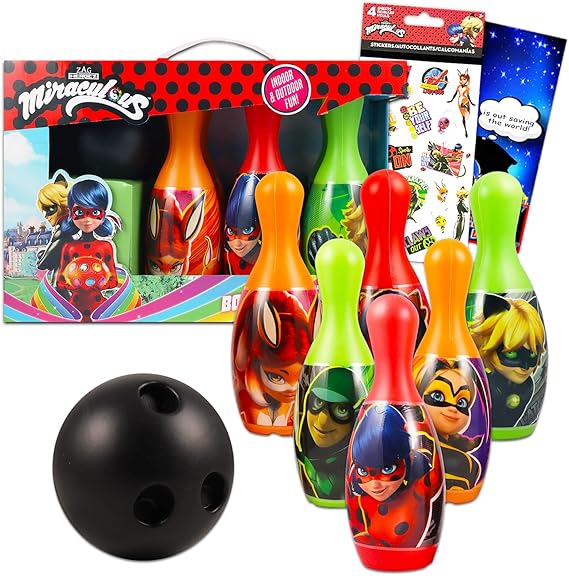Miraculous Ladybug Bowling Set Bundle Miraculous Ladybug Playset - Miraculous Ladybug Toys With Miraculous Ladybug Stickers and More (Miraculous Ladybug Games).